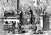 kamen, spredaj pa kamnito ploščo, ki nad luknjami štrli iz pečine (oltar?) |